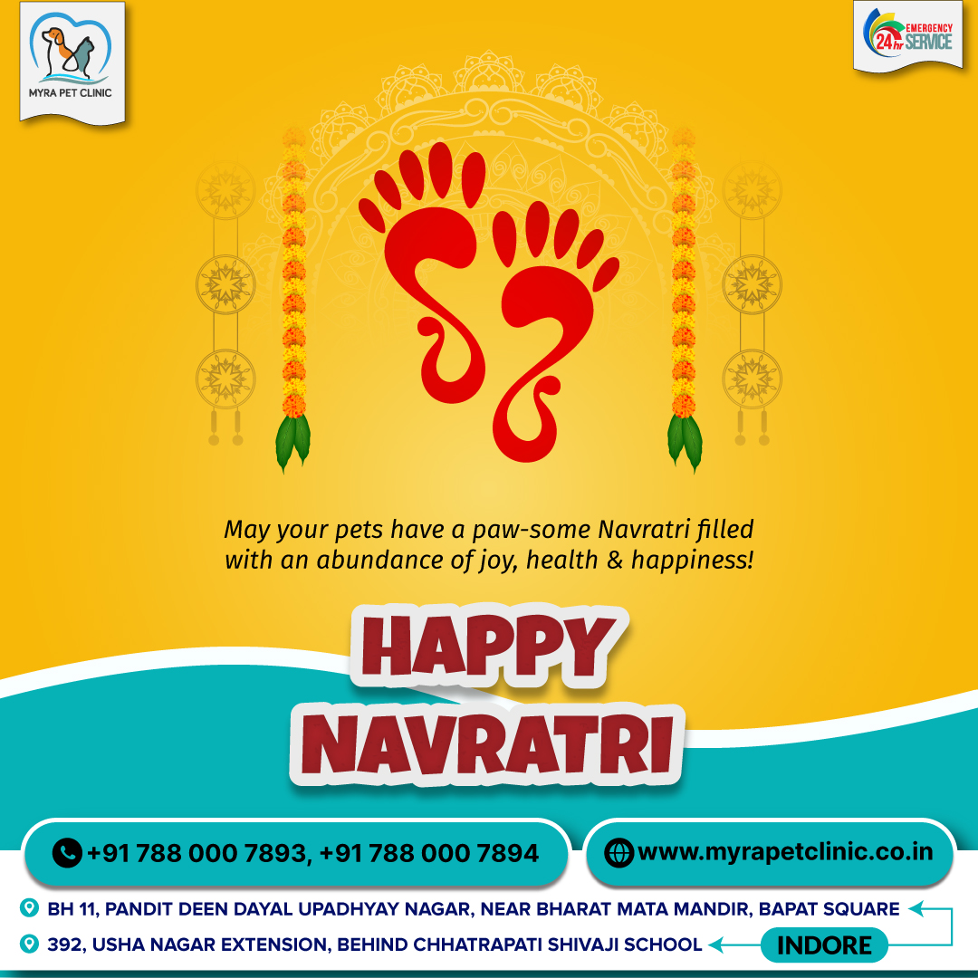 May the festival of Navratri bring joy & good health to your furry friend! Happy Navratri 💛🩵 VETERINARY HELPLINE ☎️ +91 788 000 7893 & ☎️ +91 788 000 7894 . #petclinic #petlife #pet #petcare #petlovers #petsofinstagram #petfood #explore #petgrooming #petgroomingtips #petgroomingsalon #petspa #petvaccinations #pethospital #myrapetclinic #myrapetclinicindore #vetlife #veterinarian #PetLove #veterinarymedicine #petsofindore #petconsultant #explorepage #pethospitalization #animalwelfare #careforanimals #petparent #responsibility #navratri #garba